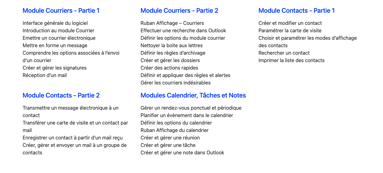 Programme de la formation Microsoft Outlook