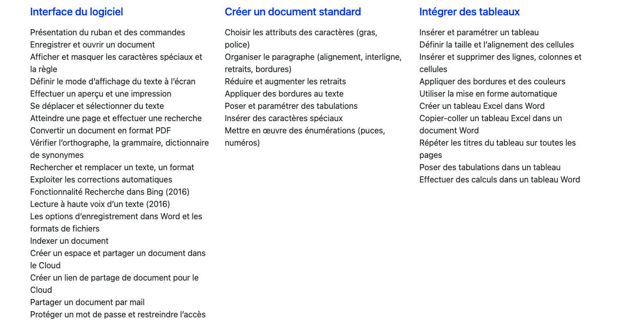 Composez votre programme Word à la carte, et créez votre propre parcours sur mesure.