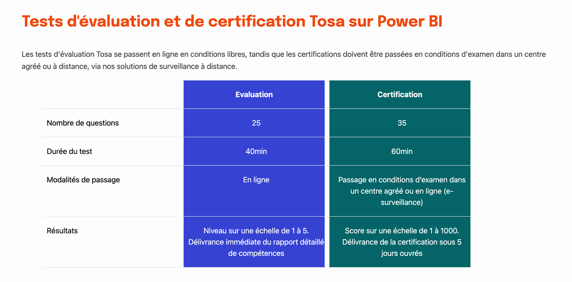 La certification Tosa Microsoft Power BI détermine et valide le niveau de compétences et d'aptitude d'un candidat. Elle permet aux étudiants, stagiaires, employés ou demandeurs d'emploi de renforcer leur employabilité et d’atteindre leurs objectifs professionnels.