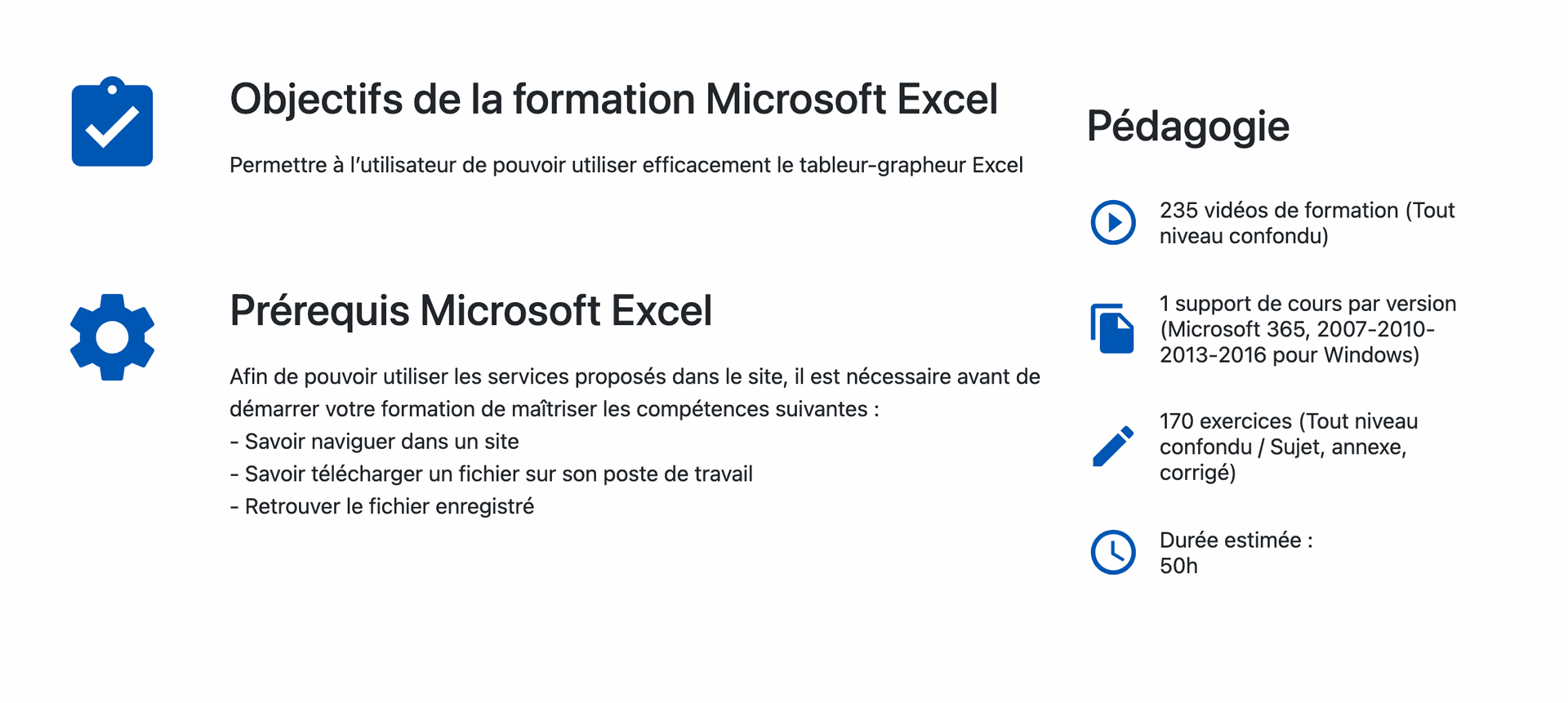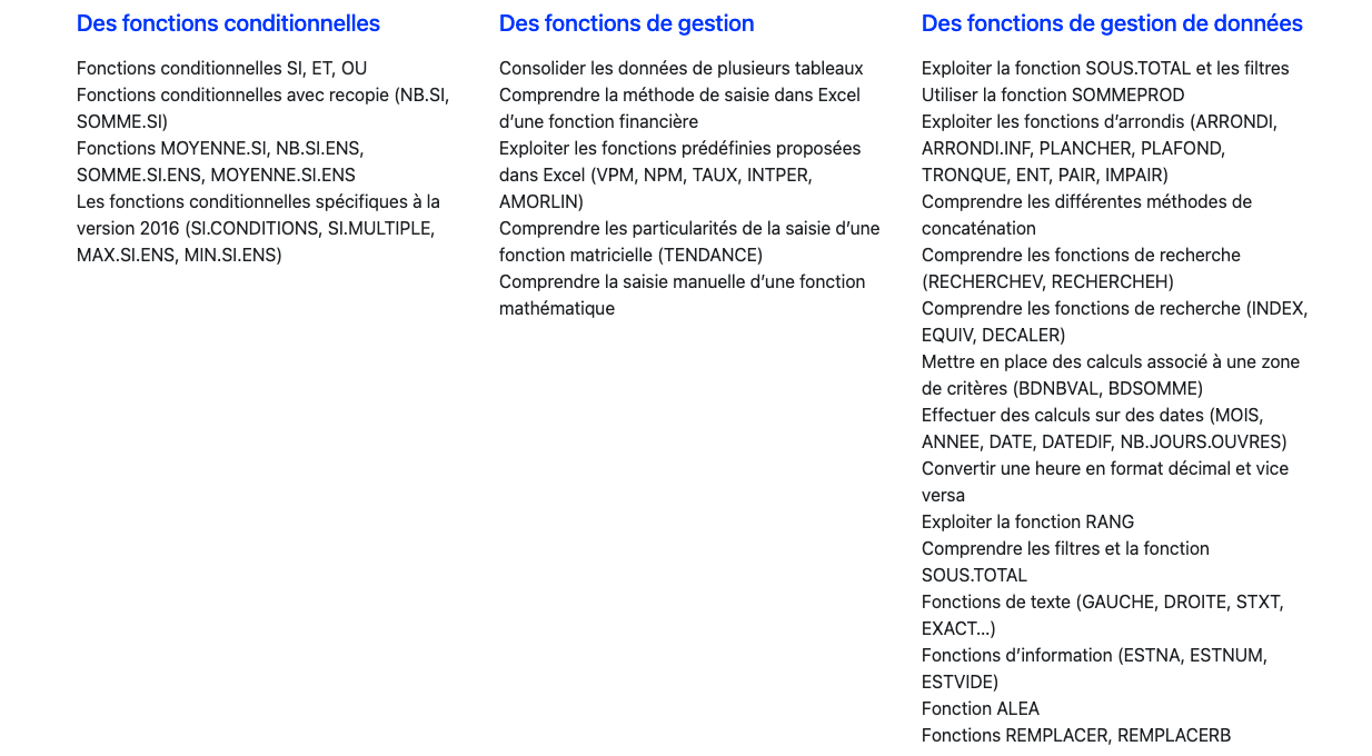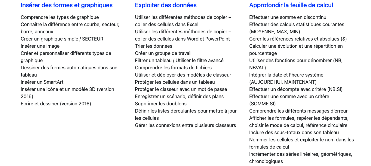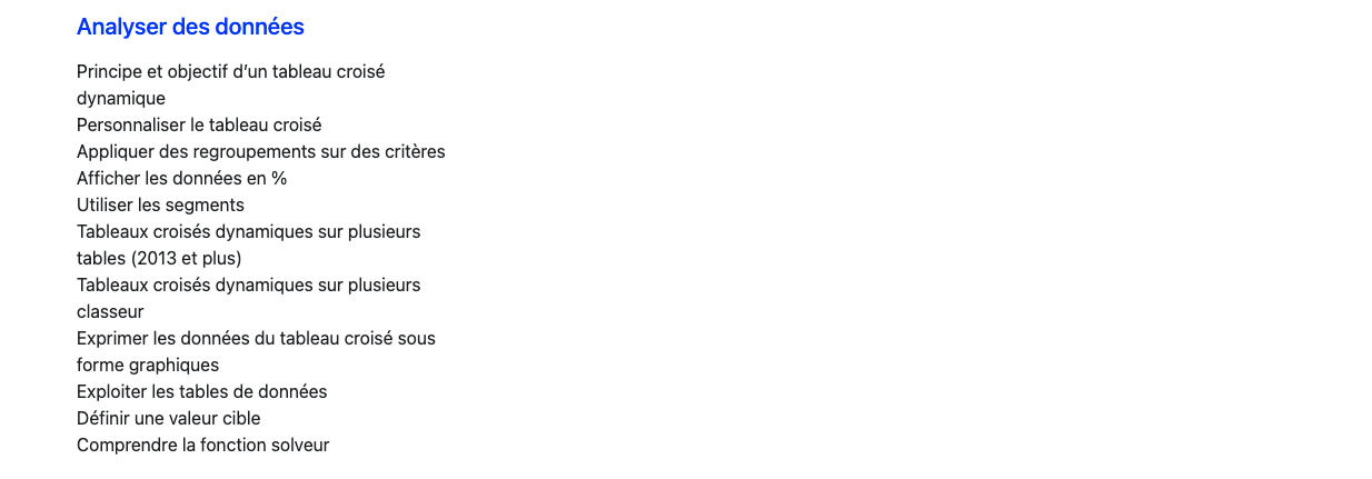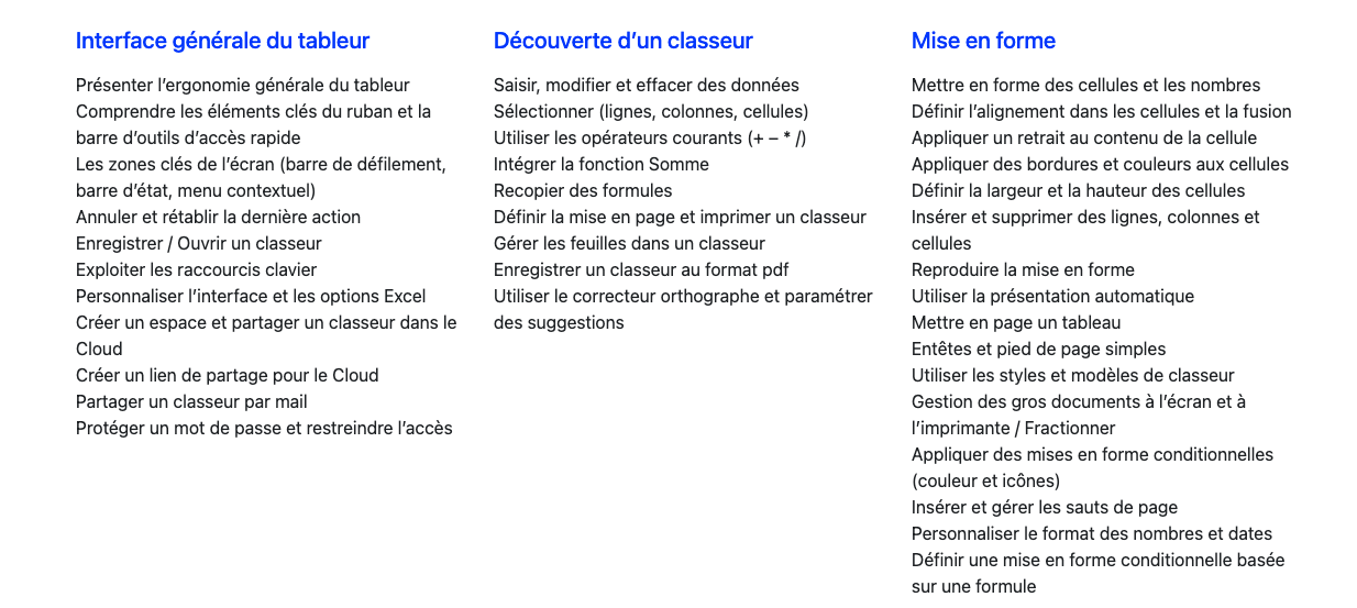 Programme de la formation Microsoft Excel